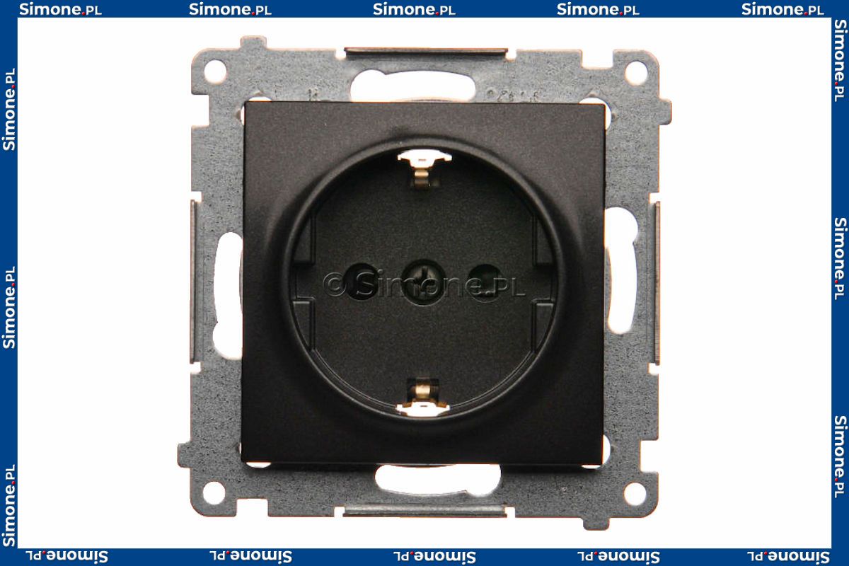 DGSZ1Z.01/48 Gniazdo pojedyncze Schuko z przesłoną torów prądowych Antracyt Simon 54 - Widok z przodu