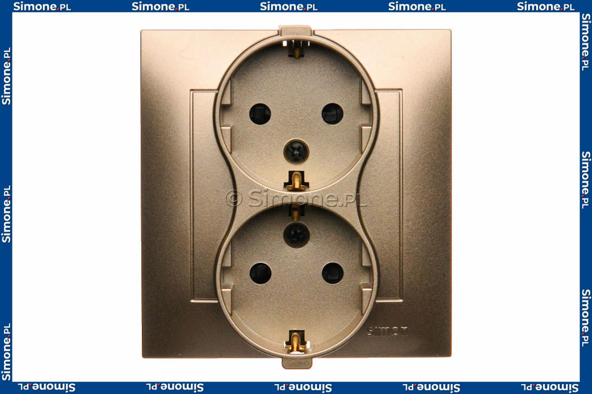 Gniazdo podwójne Schuko z przesłoną torów prądowych Złoty Mat Simon 54