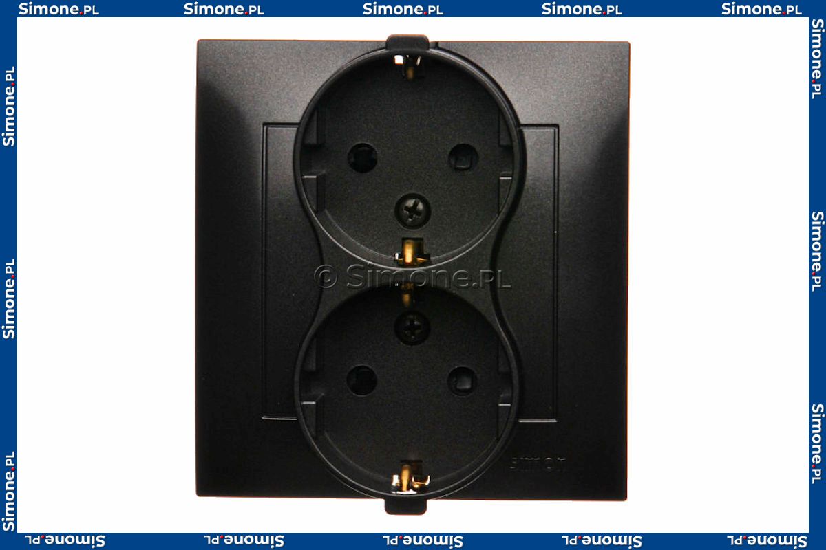 Gniazdo podwójne Schuko z przesłoną torów prądowych Antracyt Simon 54