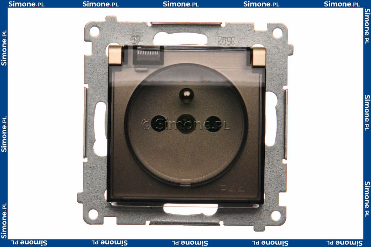 Gniazdo hermetyczne z bolcem uziemiającym do wersji IP44, przesłoną torów prądowych i klapką transparentną Złoty Mat Simon 54