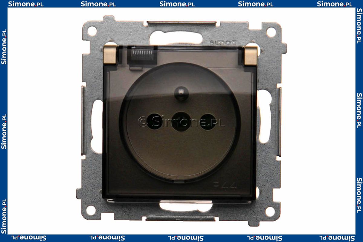 DGZ1BZ.01/44A Gniazdo hermetyczne z bolcem uziemiającym, przesłoną torów prądowych i klapką transparentną Złoty Mat Simon 54 - Widok z przodu
