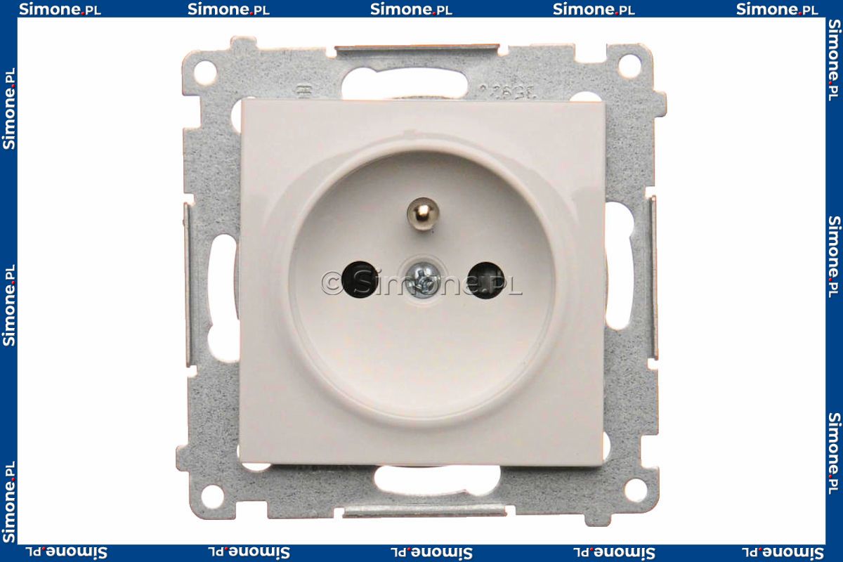 Gniazdo pojedyncze z bolcem uziemiającym i przesłoną torów prądowych z serii Simon 54 w kolorze Biały o symbolu DGZ1Z.01/11 to jedno z najpopularniejszych gniazd stosowane w instalacjach domowych i nie tylko. Produkt stanowią dwa otwory (na przewód fazowy i neutralny) oraz jeden bolec zwany również stykiem ochronnym umieszczony nad otworami.