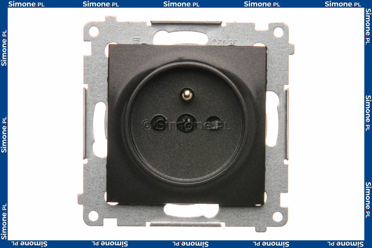 Gniazdo pojedyncze z bolcem uziemiającym i przesłoną torów prądowych z serii Simon 54 w kolorze Antracyt o symbolu DGZ1Z.01/48 to jedno z najpopularniejszych gniazd stosowane w instalacjach domowych i nie tylko. Produkt stanowią dwa otwory (na przewód fazowy i neutralny) oraz jeden bolec zwany również stykiem ochronnym umieszczony nad otworami.
