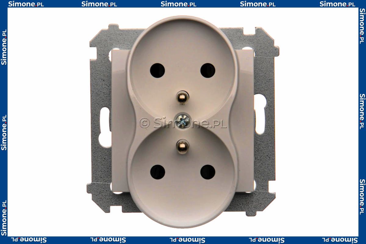 DGZ2MZ.01/11 Gniazdo podwójne z bolcem uziemiającym i przesłoną torów prądowych Biały Simon 54 - Widok z przodu