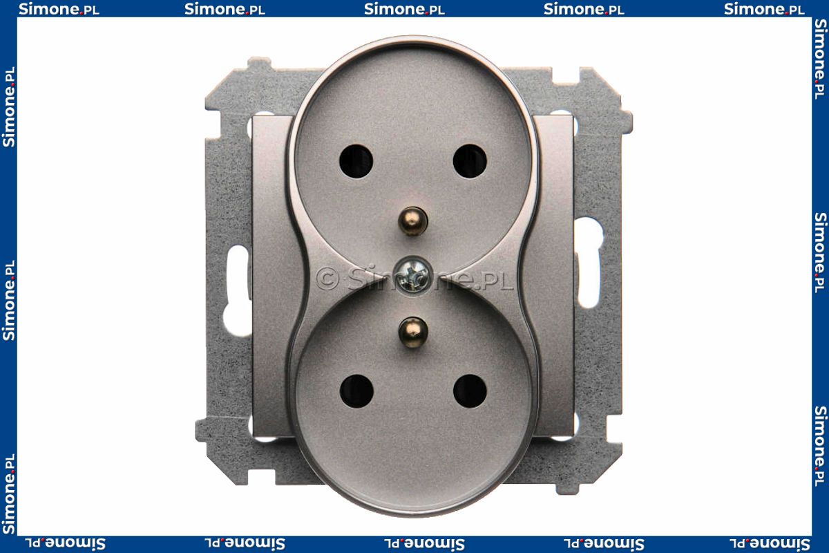 DGZ2MZ.01/43 Gniazdo podwójne z bolcem uziemiającym i przesłoną torów prądowych Srebrny Mat Simon 54 - Widok z przodu