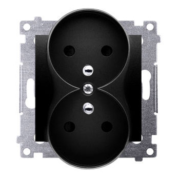 DGZ2MZ.01/49 Gniazdo wtyczkowe podwójne z uziemieniem z przesłonami - do Ramek PREMIUM, (moduł), 16A, 250V, zaciski śrubowe, czarny mat