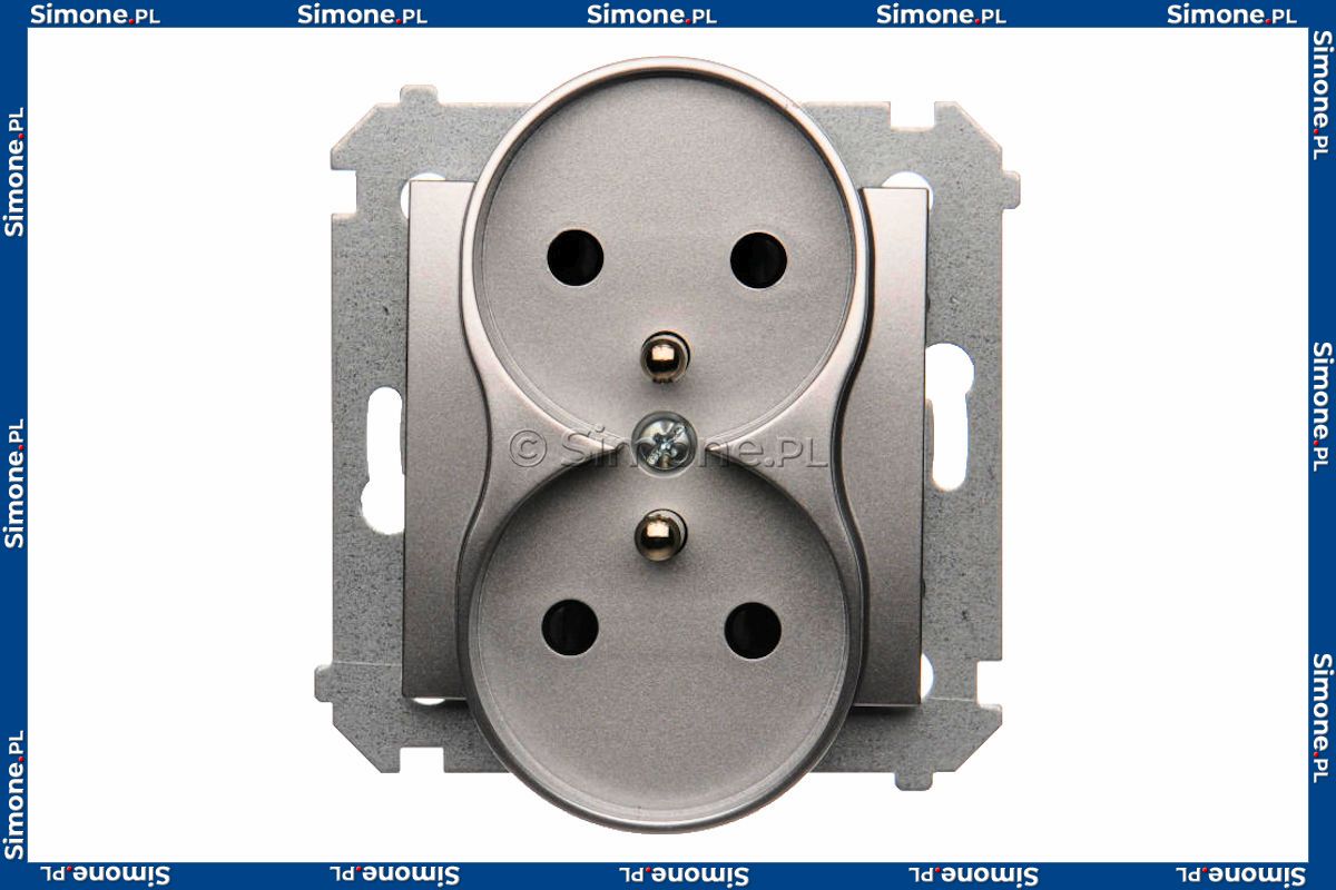 DGZ2MZN.01/43 Gniazdo podwójne z bolcem uziemiającym i przesłoną torów prądowych do ramek Nature Srebrny Mat Simon 54 - Widok z przodu