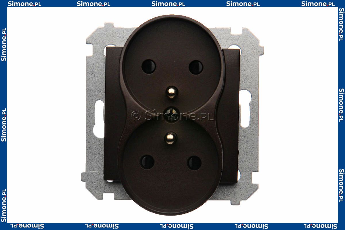 Gniazdo podwójne z bolcem uziemiającym i przesłoną torów prądowych do ramek Nature z serii Simon 54 w kolorze Brąz Mat o symbolu DGZ2MZN.01/46 to jedno z najpopularniejszych gniazd stosowane w instalacjach domowych i nie tylko. Produkt stanowią cztery otwory (na przewód fazowy i neutralny) oraz dwa bolce zwany również stykami ochronnymi umieszczone na środku pokrywy.