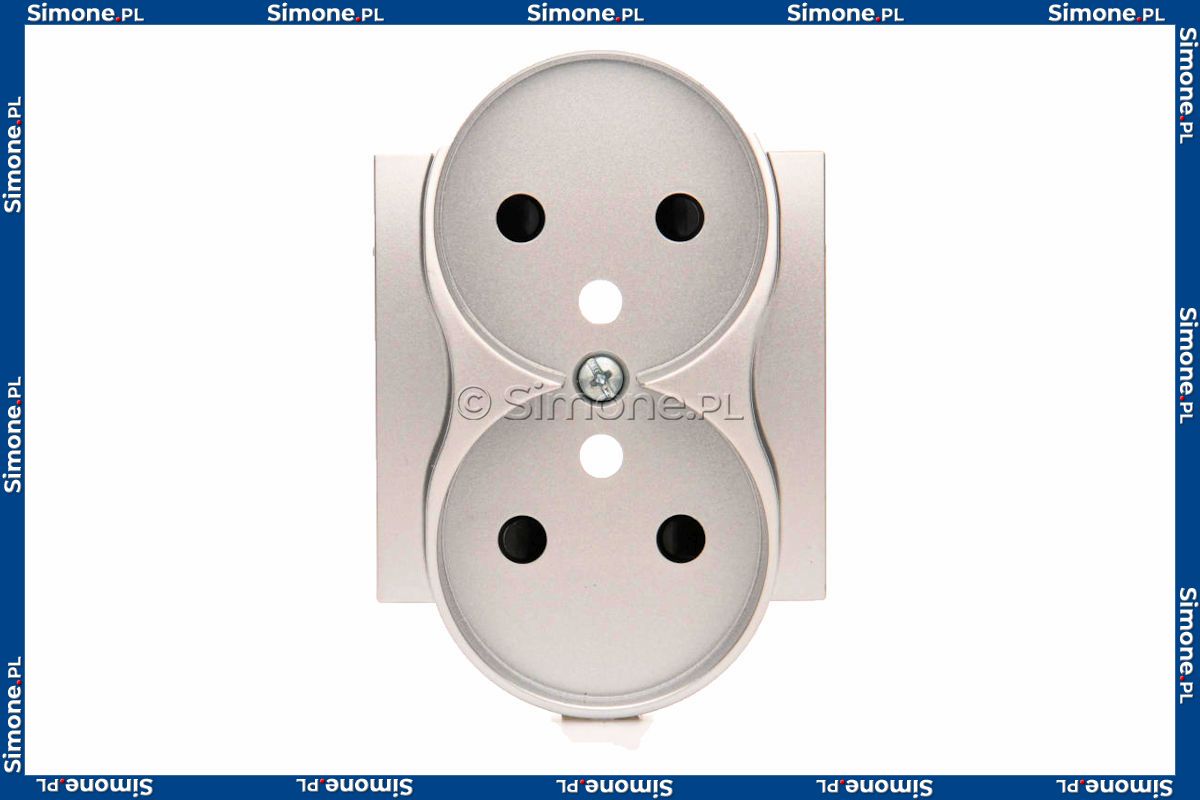 DGZ2MZNP/43 Pokrywa gniazda podwójnego z uziemieniem i przesłonami torów prądowych (pokrywa pasuje do ramek serii S54 Nature) Srebrny Mat Simon 54 - Widok z przodu