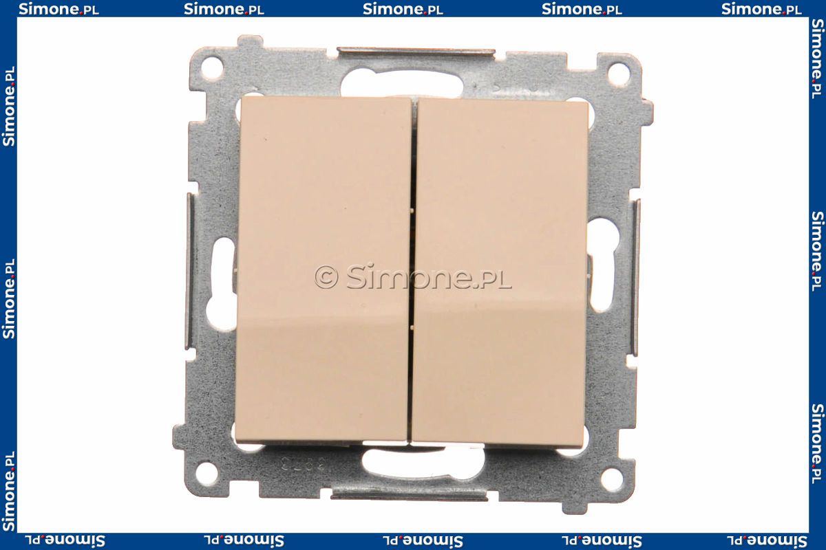 Przycisk zwierny podwójny 10A z serii Simon 54 w kolorze Kremowy o symbolu DP2.01/41 zwany również przyciskiem chwilowym dokonuje krótkotrwałego połączenia w obrębie dwóch obwodów elektrycznych. Produkt zaliczany jest do grupy łączników monostabilnych, co oznacza, że w swoim mechanizmie posiada sprężynę, która po puszczeniu przycisku powoduje rozłączenie obwodu i jednoczesny powrót klawisza do pierwotnej pozycji.