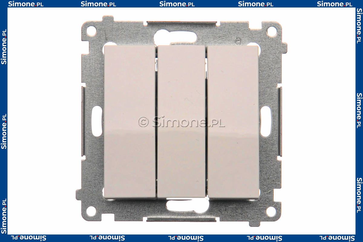 Przycisk zwierny potrójny z podświetleniem typu LED w kolorze niebieskim 10A z serii Simon 54 w kolorze Biały o symbolu DP31L.01/11 zwany również przyciskiem chwilowym dokonuje krótkotrwałego połączenia w obrębie dwóch obwodów elektrycznych. Produkt zaliczany jest do grupy łączników monostabilnych, co oznacza, że w swoim mechanizmie posiada sprężynę, która po puszczeniu przycisku powoduje rozłączenie obwodu i jednoczesny powrót klawisza do pierwotnej pozycji.