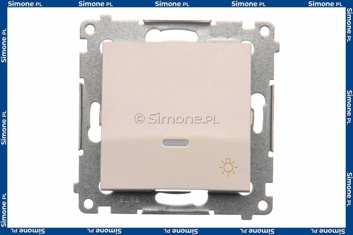 Przycisk zwierny z symbolem światła i podświetleniem typu LED w kolorze niebieskim 16A z serii Simon 54 w kolorze Biały o symbolu DS1AL.01/11 zwany również przyciskiem chwilowym dokonuje krótkotrwałego połączenia obwodu. Produkt zaliczany jest do grupy łączników monostabilnych, co oznacza, że w swoim mechanizmie posiadają sprężynę, która po puszczeniu przycisku powoduje rozłączenie obwodu i jednoczesny powrót klawisza do pierwotnej pozycji.