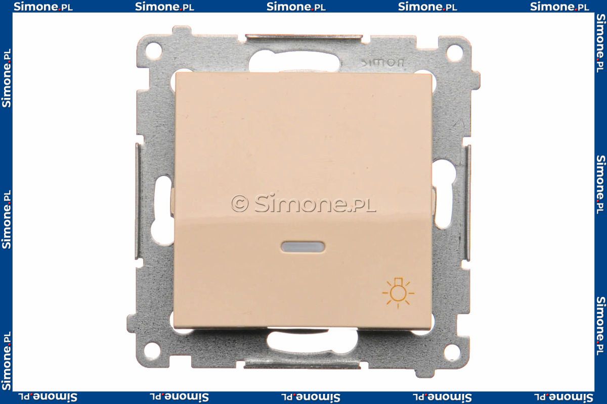 Przycisk zwierny z symbolem światła i podświetleniem typu LED w kolorze niebieskim 10A Kremowy Simon 54