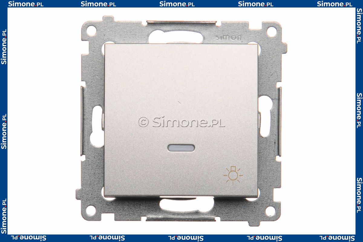 Przycisk zwierny z symbolem światła i podświetleniem typu LED w kolorze niebieskim 10A z serii Simon 54 w kolorze Srebrny Mat o symbolu DS1L.01/43 zwany również przyciskiem chwilowym dokonuje krótkotrwałego połączenia obwodu. Produkt zaliczany jest do grupy łączników monostabilnych, co oznacza, że w swoim mechanizmie posiadają sprężynę, która po puszczeniu przycisku powoduje rozłączenie obwodu i jednoczesny powrót klawisza do pierwotnej pozycji.