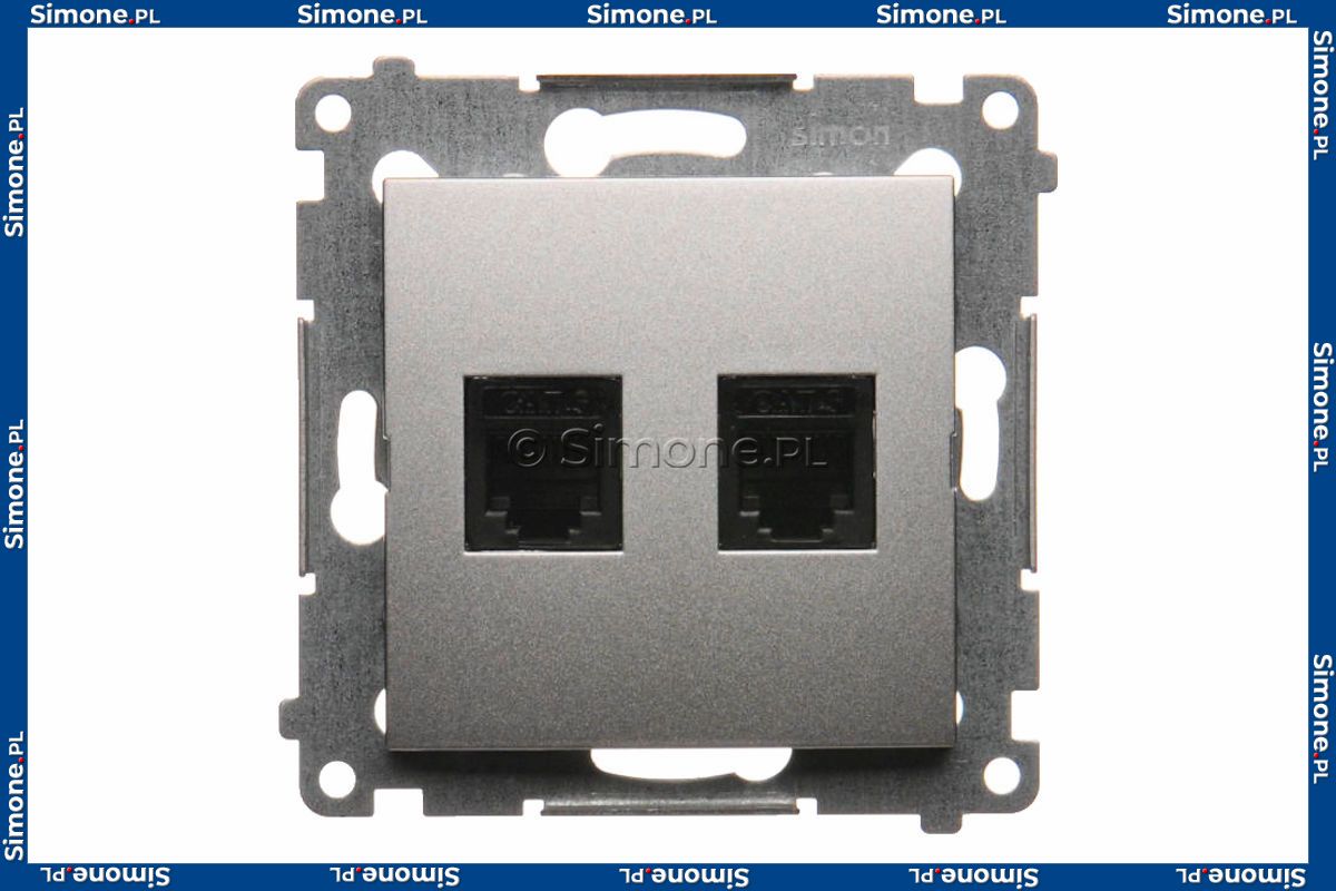 Gniazdo telefoniczne podwójne 2xRJ12 Srebrny Mat Simon 54