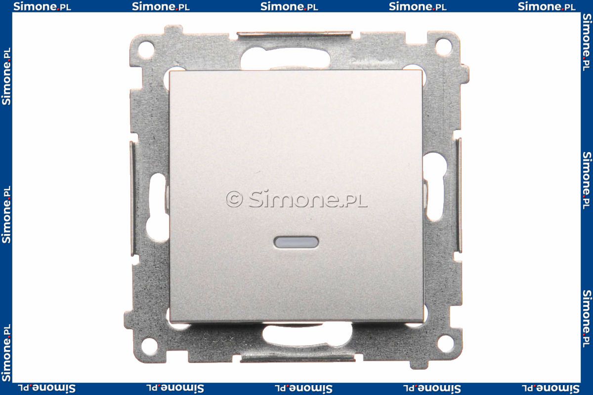 Łącznik pojedynczy z podświetleniem typu LED w kolorze niebieskim 10A z serii Simon 54 w kolorze Srebrny Mat o symbolu DW1L.01/43 zwany również łącznikiem jednobiegunowym z podświetleniem to najprostszy, a zarazem najpopularniejszy łącznik elektryczny, który znajduje zastosowanie w instalacjach niskiego napięcia do włączania/wyłączania jednego obwodu, np. jednej lampy znajdującej się w pomieszczeniu.