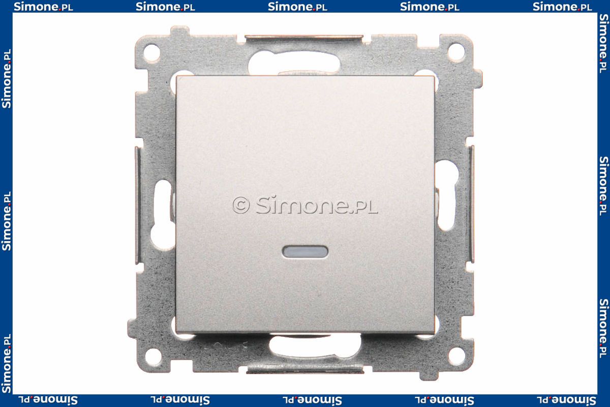 Łącznik pojedynczy z sygnalizacją załączenia typu LED w kolorze niebieskim 10A Srebrny Mat Simon 54