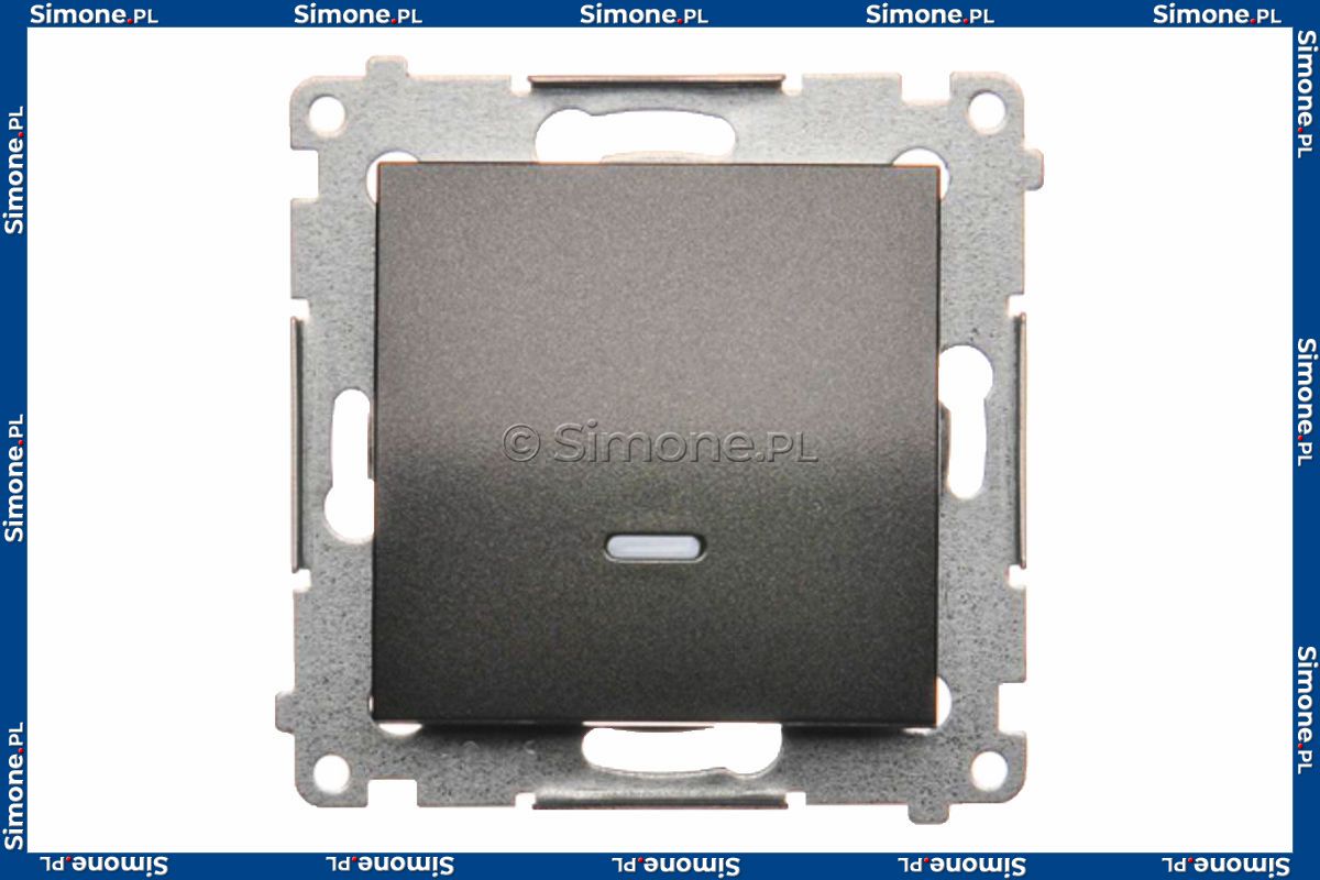 DW1ZL.01/48 Łącznik pojedynczy z sygnalizacją załączenia typu LED w kolorze niebieskim 10A Antracyt Simon 54 - Widok z przodu