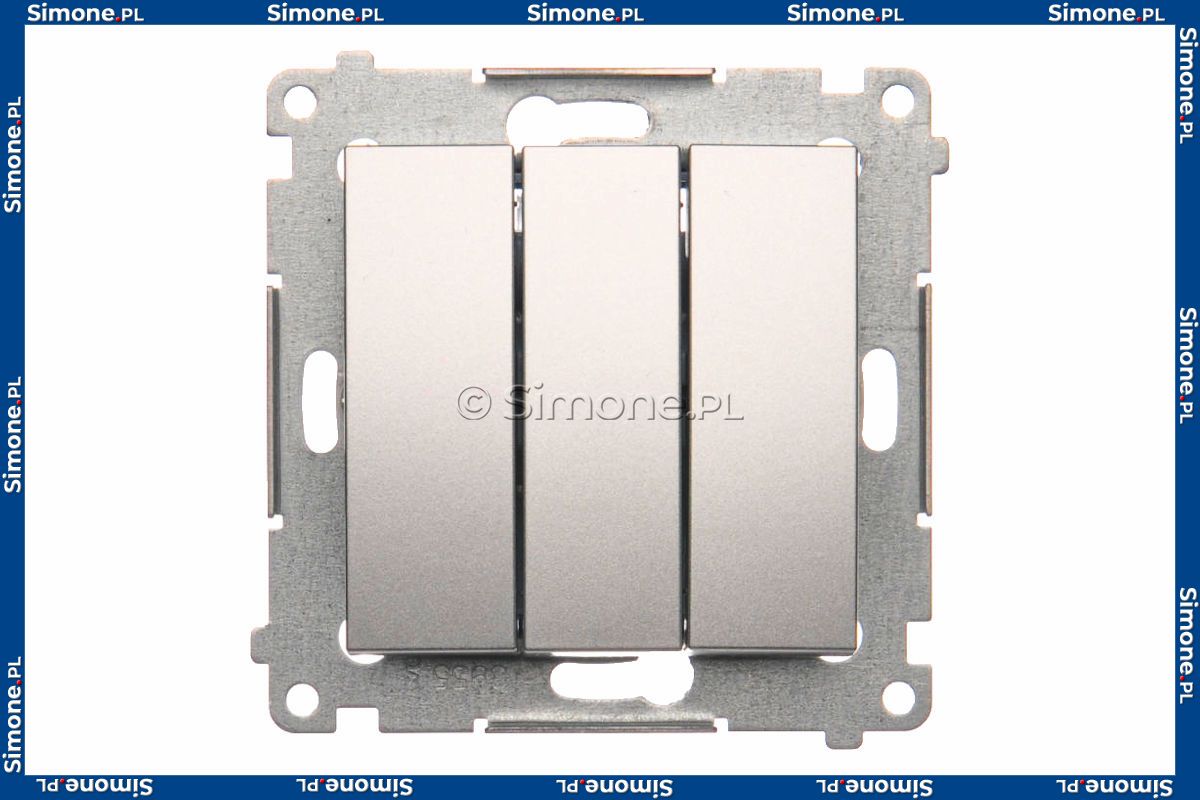 DW31L.01/43 Łącznik potrójny z podświetleniem typu LED w kolorze niebieskim 10A Srebrny Mat Simon 54 - Widok z przodu