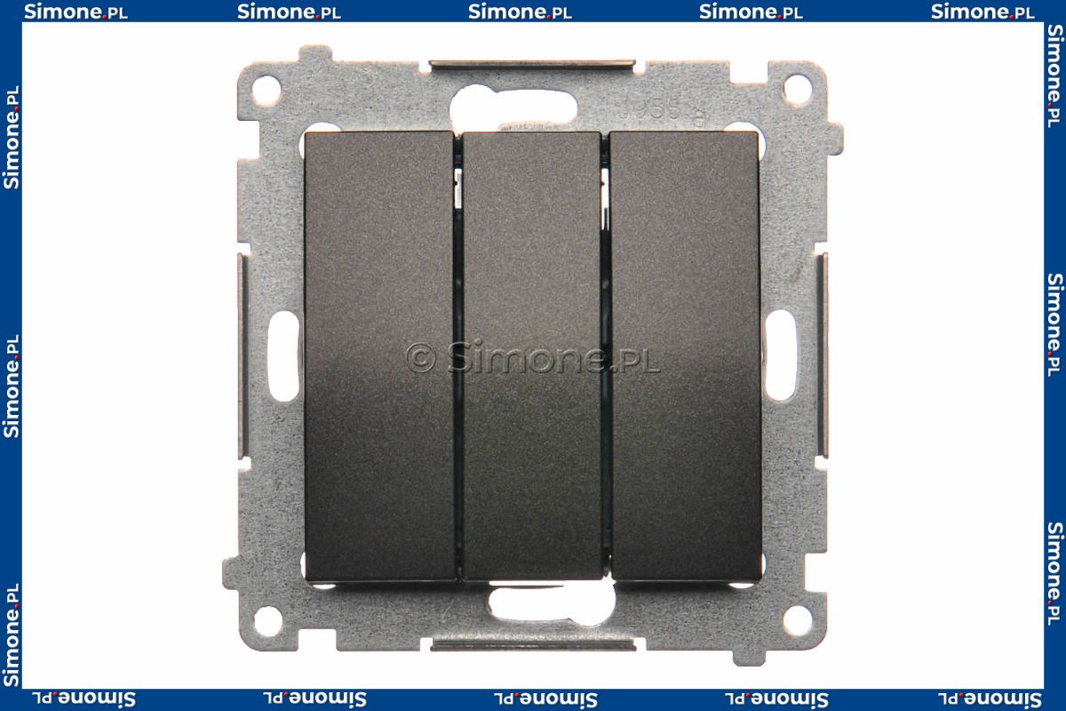 Łącznik potrójny z podświetleniem typu LED w kolorze niebieskim 10A Antracyt Simon 54