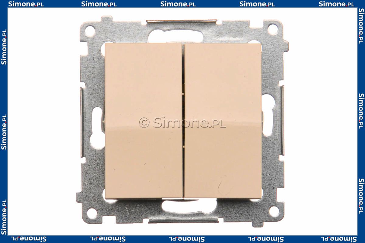 Łącznik podwójny 10A z serii Simon 54 w kolorze Kremowy o symbolu DW5.01/41 zwany również łącznikiem świecznikowym lub szeregowym znajduje zastosowanie wszędzie tam, gdzie zachodzi potrzeba sterowania dwoma obwodami za pomocą jednego łącznika. Produkt wyposażony jest w dwa klawisze.