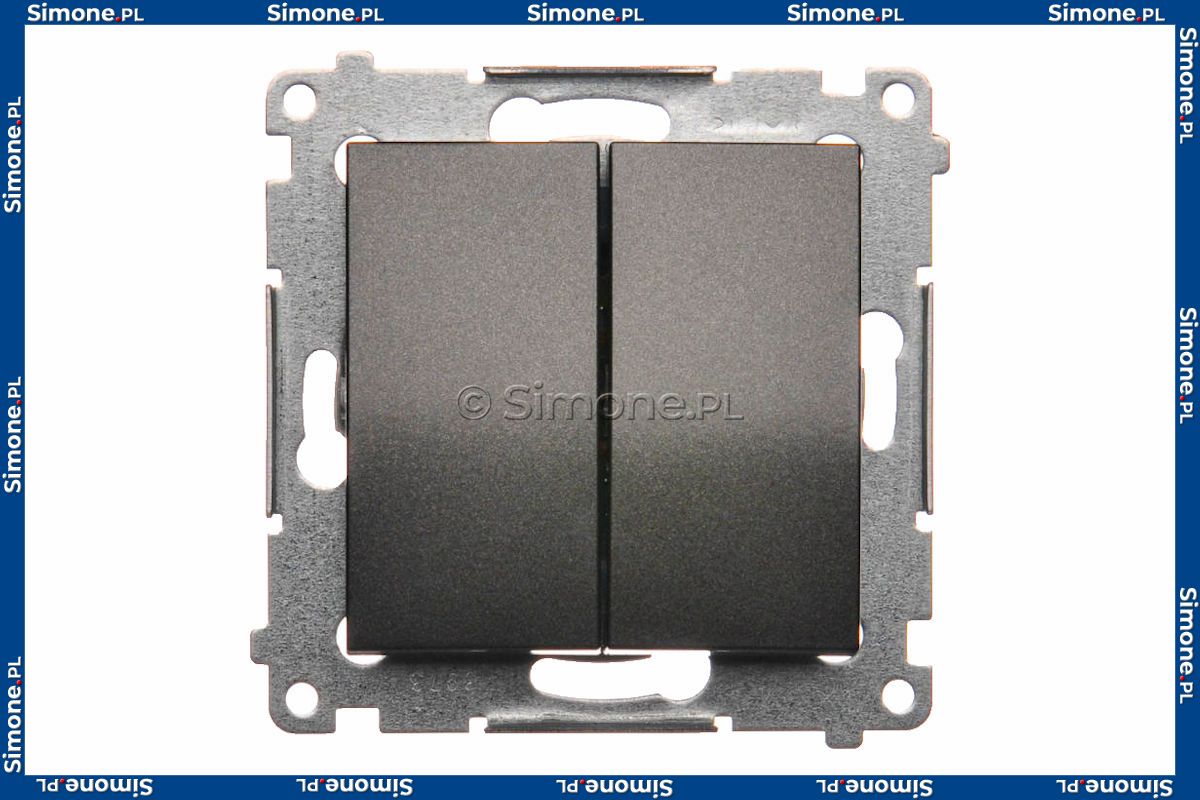 Łącznik podwójny 10A z serii Simon 54 w kolorze Antracyt o symbolu DW5.01/48 zwany również łącznikiem świecznikowym lub szeregowym znajduje zastosowanie wszędzie tam, gdzie zachodzi potrzeba sterowania dwoma obwodami za pomocą jednego łącznika. Produkt wyposażony jest w dwa klawisze.