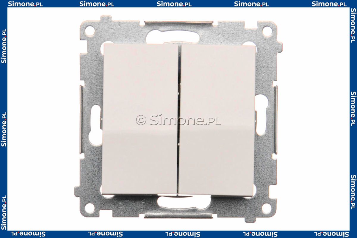Łącznik umożliwia wygodne włączanie i wyłączanie dwóch obwodów o prądzie znamionowym 16 A, co pozwala na bezpieczne sterowanie bardziej wymagającymi odbiornikami. Klasyczna forma oraz neutralna kolorystyka sprawiają, że element estetycznie wpisuje się w różne aranżacje wnętrz, oferując uporządkowane wykończenie punktu sterowania.