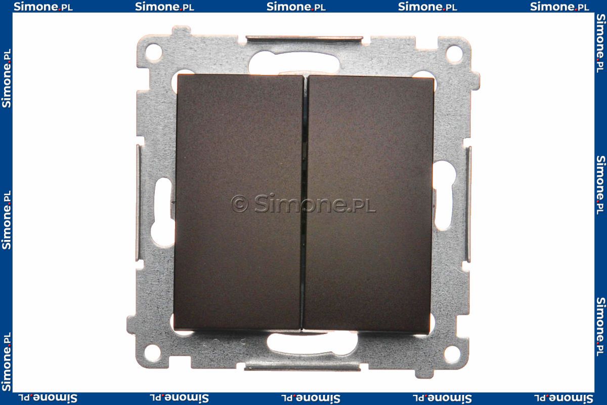 Łącznik podwójny 16A z serii Simon 54 w kolorze Brąz Mat o symbolu DW5A.01/46 zwany również łącznikiem świecznikowym lub szeregowym znajduje zastosowanie wszędzie tam, gdzie zachodzi potrzeba sterowania dwoma obwodami za pomocą jednego łącznika. Produkt wyposażony jest w dwa klawisze.