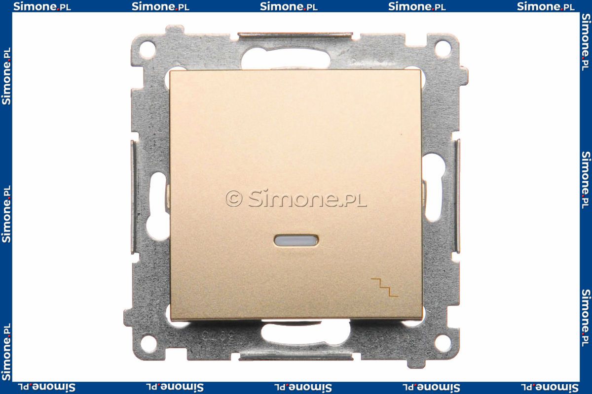 Łącznik schodowy z podświetleniem typu LED w kolorze niebieskim 10A Złoty Mat Simon 54