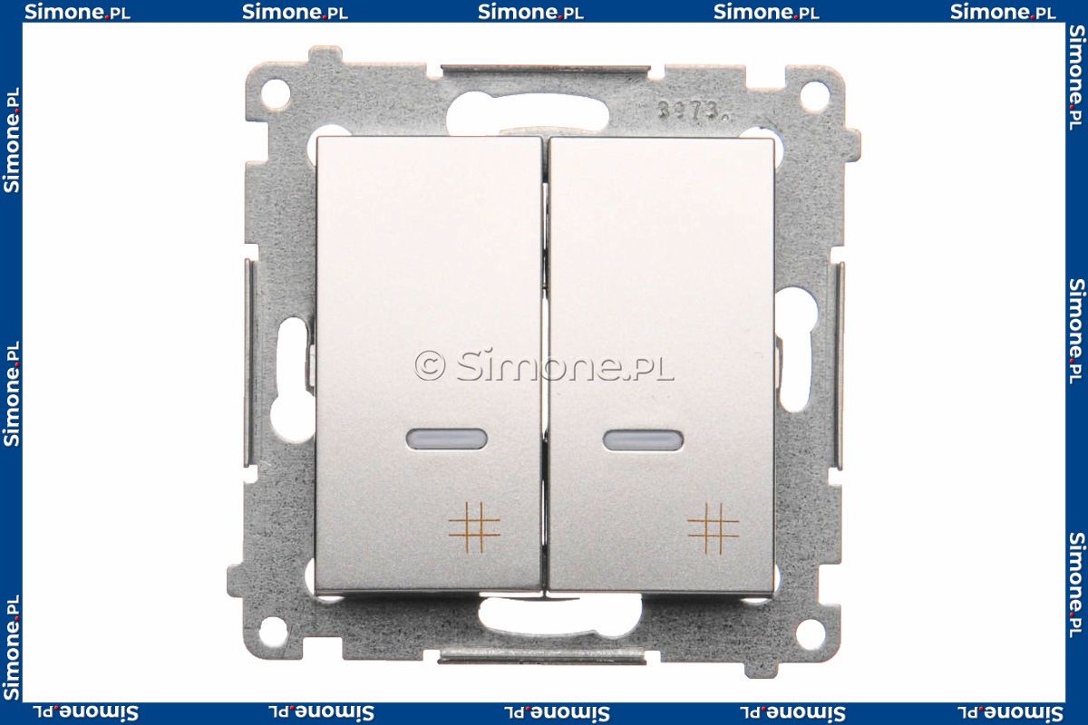 DW7/2L.01/43 Łącznik krzyżowy podwójny z podświetleniem LED, (moduł), 10AX, szybkozłącza, srebrny mat, metalizowany