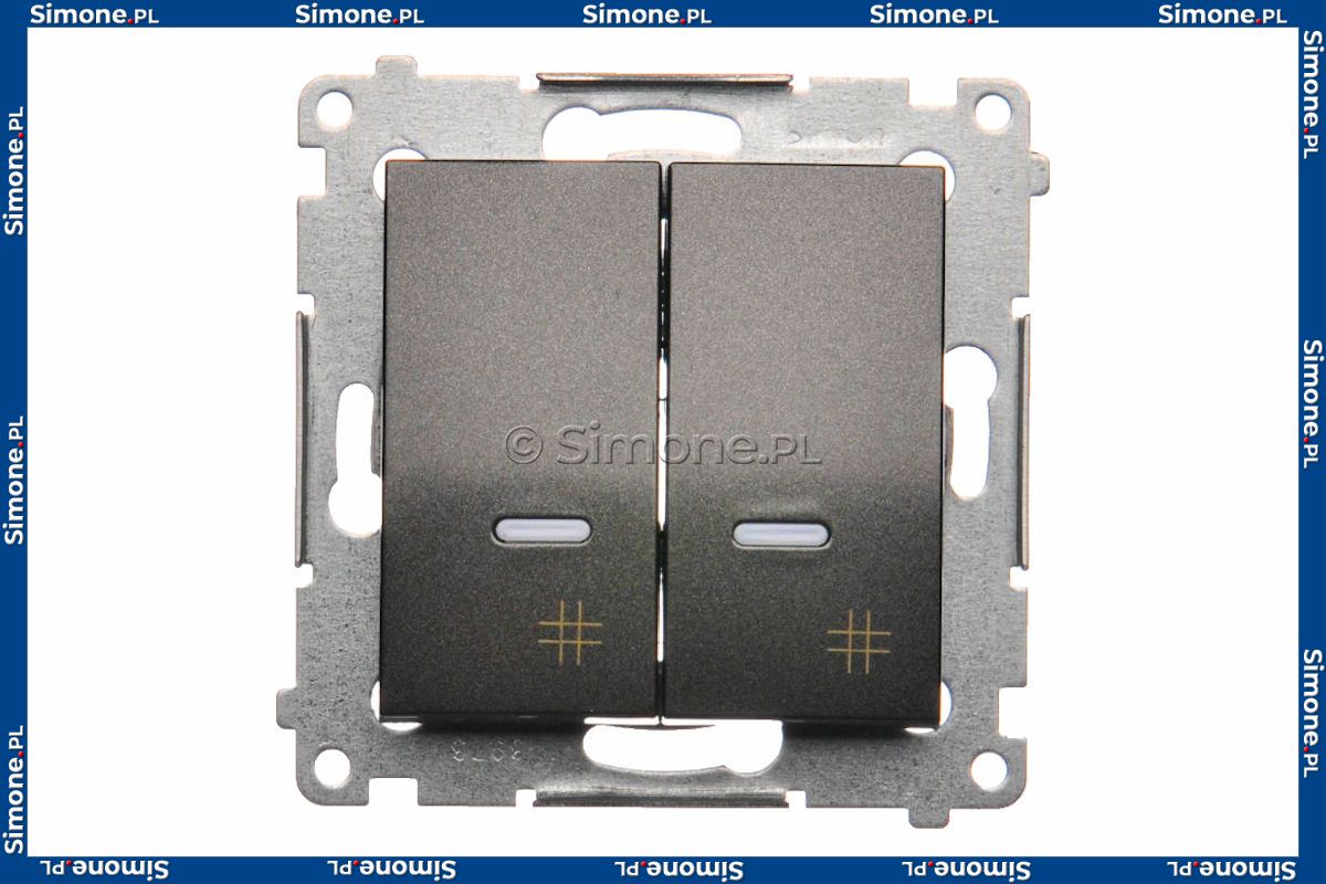 DW7/2L.01/48 Łącznik krzyżowy podwójny z podświetleniem typu LED w kolorze niebieskim 10A Antracyt Simon 54 - Widok z przodu