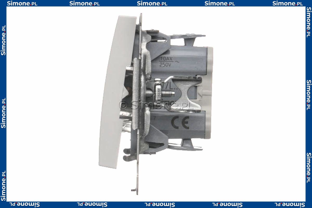 Produkt przeznaczony jest do montażu podtynkowego w standardowych puszkach instalacyjnych. Podłączenie realizowane jest za pomocą szybkozłączek, co umożliwia szybki i pewny montaż przewodów. Łącznik współpracuje z ramkami Simon 54 Premium oraz Simon 54 Nature, zapewniając estetyczne i spójne wykończenie instalacji elektrycznej.