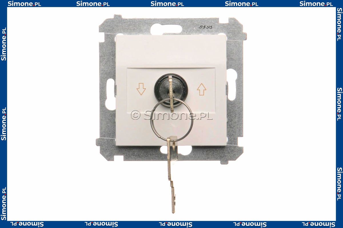 DWZK.01/11 Łącznik na kluczyk żaluzjowy pojedynczy 3 pozycyjny I-0-II Biały Simon 54 - Widok z przodu