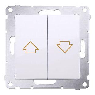 Przycisk żaluzjowy, impulsowy 16A z serii Simon 54 w kolorze Biały o symbolu DZP1A.01/11 często nazywany jest również przyciskiem roletowym. Przycisk żaluzjowy zaliczany jest do grupy łączników monostabilnych, co oznacza, że w swoim mechanizmie posiadają sprężynę, która po puszczeniu przycisku powoduje rozłączenie obwodu i jednoczesny powrót klawisza do pierwotnej pozycji.