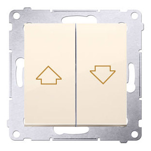 Przycisk żaluzjowy, impulsowy 16A z serii Simon 54 w kolorze Kremowy o symbolu DZP1A.01/41 często nazywany jest również przyciskiem roletowym. Przycisk żaluzjowy zaliczany jest do grupy łączników monostabilnych, co oznacza, że w swoim mechanizmie posiadają sprężynę, która po puszczeniu przycisku powoduje rozłączenie obwodu i jednoczesny powrót klawisza do pierwotnej pozycji.