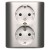 EGSZ2PZ/43 Gniazdo wtyczkowe podwójne z uziemieniem typu Schuko z przesłonami torów prądowych - wersja skandynawska, (kompletny produkt), 16A, 250V, zaciski śrubowe, srebrny mat, metalizowany