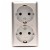 Szkic zdjęcia gniazdka elektrycznego obok którego znajdują się szczegółowe dane techniczne produktu-