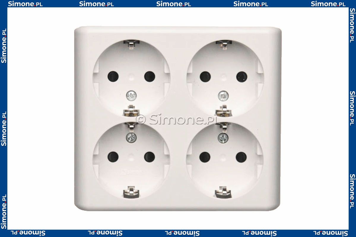Gniazdo poczwórne Schuko z przesłoną torów prądowych Biały Simon 54