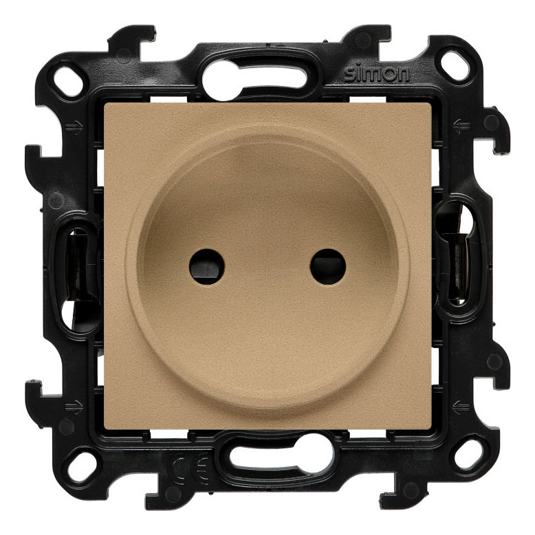 Gniazdo wtyczkowe pojedyncze bez uziemienia z przesłonami torów prądowych 16A z serii Simon 24 marki Kontakt-Simon w kolorze szampański mat o symbolu NG1CZ.01/34 przeznaczone jest do zasilania urządzeń elektrycznych w instalacjach domowych i użytkowych. Produkt znajduje zastosowanie w pomieszczeniach mieszkalnych oraz biurowych, zapewniając wygodny dostęp do energii elektrycznej.