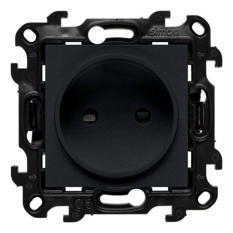 Gniazdo wtyczkowe pojedyncze bez uziemienia z przesłonami torów prądowych 16A z serii Simon 24 marki Kontakt-Simon w kolorze grafitowym mat o symbolu NG1CZ.01/38 przeznaczone jest do zasilania urządzeń elektrycznych w instalacjach domowych i użytkowych. Produkt znajduje zastosowanie w pomieszczeniach mieszkalnych oraz biurowych, zapewniając wygodny dostęp do energii elektrycznej.
