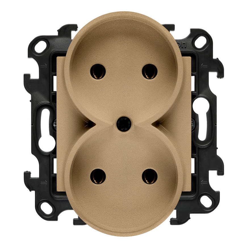 Gniazdo pozwala na jednoczesne podłączenie dwóch odbiorników, co zwiększa funkcjonalność instalacji i ogranicza potrzebę stosowania dodatkowych punktów zasilania. Brak styku ochronnego sprawia, że produkt przeznaczony jest do obwodów niewymagających uziemienia. Solidna konstrukcja zapewnia stabilne działanie oraz trwałość w codziennym użytkowaniu, a uniwersalny wygląd umożliwia łatwe dopasowanie do różnych aranżacji wnętrz.