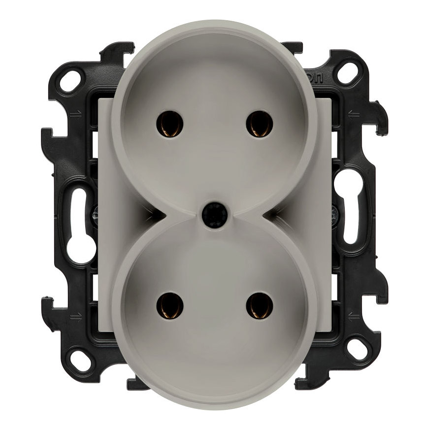Gniazdo pozwala na jednoczesne podłączenie dwóch odbiorników, co zwiększa funkcjonalność instalacji i ogranicza potrzebę stosowania dodatkowych punktów zasilania. Brak styku ochronnego sprawia, że produkt przeznaczony jest do obwodów niewymagających uziemienia. Solidna konstrukcja zapewnia stabilne działanie oraz trwałość w codziennym użytkowaniu, a uniwersalny wygląd umożliwia łatwe dopasowanie do różnych aranżacji wnętrz.