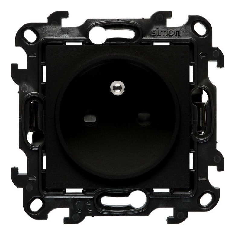 Gniazdo wtyczkowe pojedyncze z uziemieniem i przesłonami torów prądowych 16A z serii Simon 24 marki Kontakt-Simon w kolorze czarnym mat o symbolu NGZ1CZ.01/49 przeznaczone jest do zasilania urządzeń elektrycznych w instalacjach domowych i użytkowych. Produkt znajduje zastosowanie w pomieszczeniach mieszkalnych, biurowych oraz innych przestrzeniach, zapewniając bezpieczny i wygodny dostęp do energii elektrycznej.