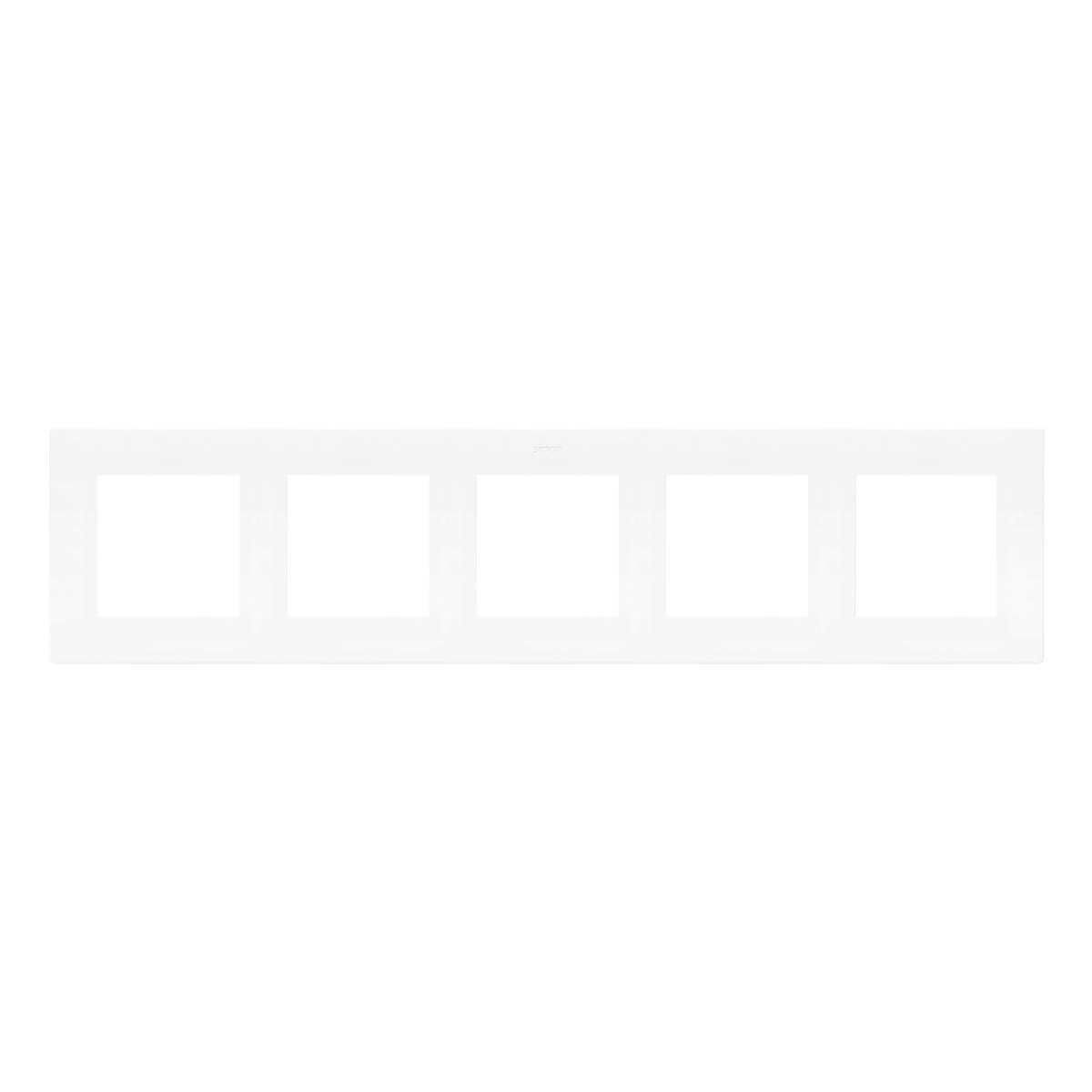Ramka umożliwia montaż pięciu mechanizmów obok siebie, takich jak łączniki, gniazda czy inne elementy osprzętu, co pozwala na maksymalne wykorzystanie przestrzeni instalacyjnej. Prosta forma oraz neutralna kolorystyka sprawiają, że dobrze komponuje się z różnymi aranżacjami wnętrz, a solidne wykonanie gwarantuje trwałość i estetyczny wygląd przez długi czas użytkowania.