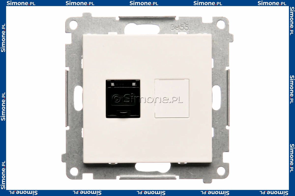 Gniazdo komputerowe pojedyncze RJ45 kat. 6 z przesłoną przeciwkurzową Biały Mat Simon 55