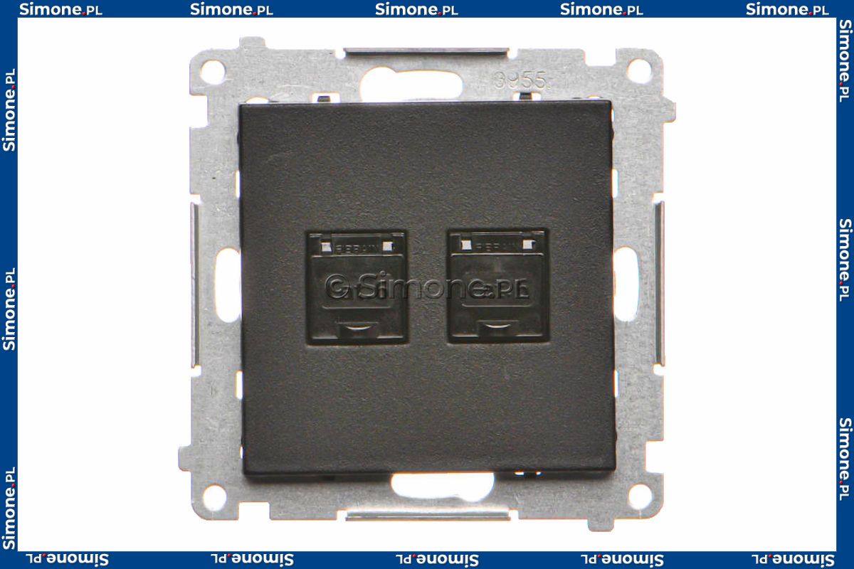 Gniazdo komputerowe podwójne 2xRJ45 kat. 6 z przesłoną przeciwkurzową Czarny Mat Simon 55