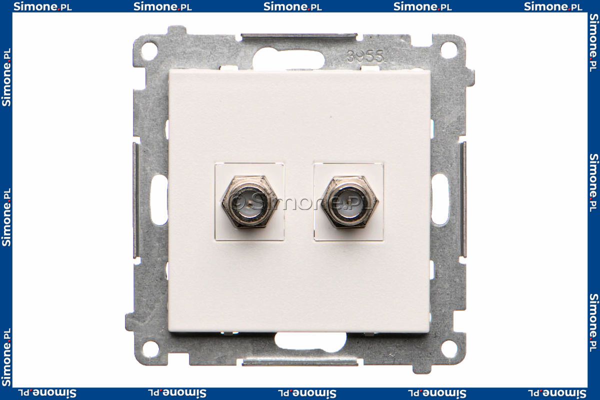 Gniazdo antenowe SAT typu F podwójne Biały Mat Simon 55