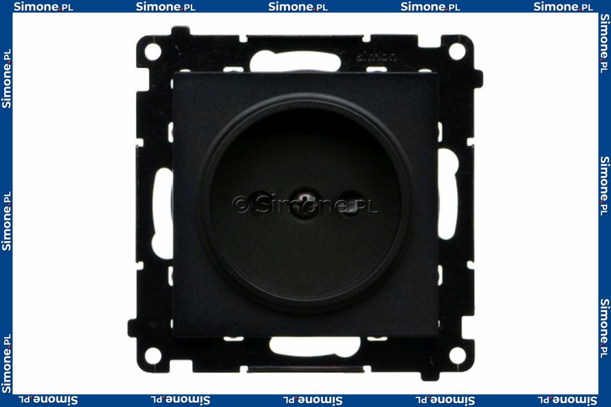 Gniazdo pojedyncze bez bolca uziemiającego z przesłoną torów prądowych 16A, szybkozłącza Czarny Mat Simon 55