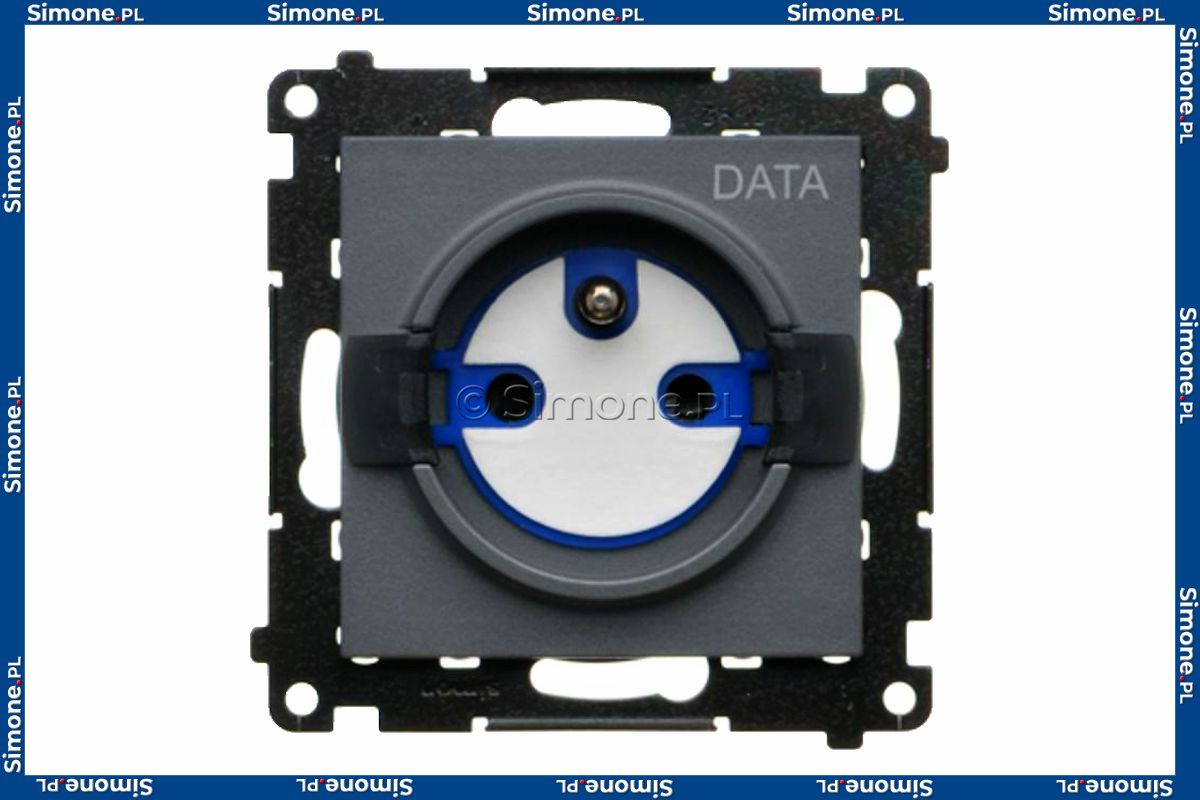 TGD1CZ.01/116 Gniazdo pojedyncze z bolcem uziemiającym typu DATA Grafitowy Mat Simon 55 - Widok z przodu