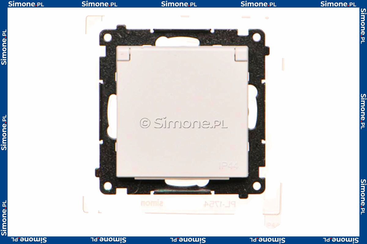 Gniazdo hermetyczne Schuko z przesłoną torów prądowych, uszczelką ramki i klapką w kolorze wyrobu 16A, szybkozłącza Biały Mat Simon 55